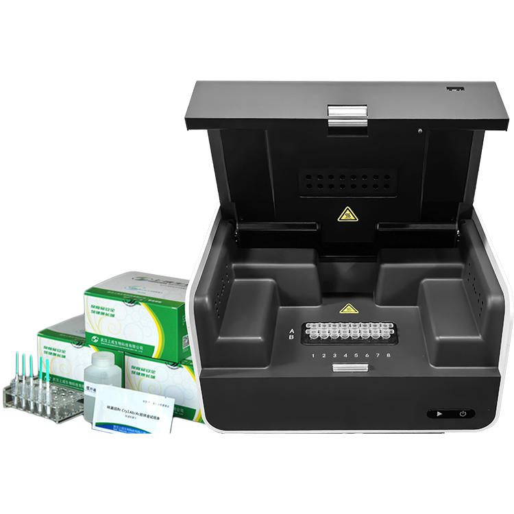 配置標準規范:基于專業實驗室基礎,新型轉基因快速檢測儀,采用專用的試劑盒(含快速提取試劑+PCR反應試劑),專用PCR儀(16通道)。